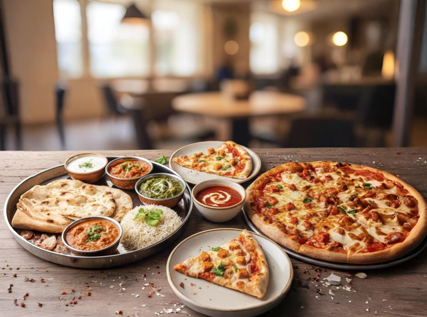 Serves authentic Indian flavours and delicious pizzas, freshly prepared to satisfy every craving.